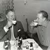 1950-1960 Oscar Sørensen, 1.lærer i Selde (med briller) og hustru Kirsten Sørensen samt Aksel Bach, bager.