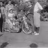 En dreng har fået lov til at sidde på en flot motorcykel under et motorløb på Gentofte Stadion