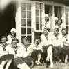 Medlemmer af Damernes Roklub uden for Roklubbens sommerhus i Sletten