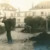 Poul Thomsen står med sin datter Kirsten i familiens have