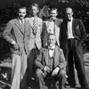 Personalet i Ordrup-Charlottenlund Bank er samlet på kontoret i anledning af bankens 25-års jubilæum. Forrest sidder Gustav Andersen, medstifter af banken og mangeårigt bestyrelsesmedlem. Ved siden af til højre står bankens direktør P. Kjær-Andersen