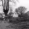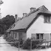 Et af de gamle huse med stråtag og frodig have. På taget ses fjernsynsantenne