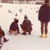 Familien de Neergaard er på kælketur i Bernstorffsparken en vinterdag