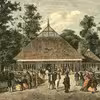 Koncertsalen ved Klampenborg Badeanstalt som blev tegnet af Gottlieb Bindesbøll ca. 1845 og blev nedrevet 1923 efter badeanstaltens brand