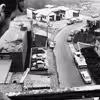 Maleren Poul Gernes står med en rose i munden ved sit gavlmaleri på Tuborg