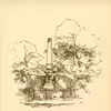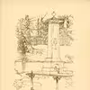 Stadsgartner Aksel Andersens vignet af Emiliekilde mindesmærket. Vignetten stammer fra bogen om Gentofte kommunes tekniske forvaltning i anledning af dennes 50 års jubilæum.