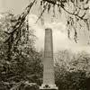 Stadsgarner Aksel Andersens vignet af Bernstorffstøtten på Lyngbyvejen. Vignetten stammer fra bogen om Gentofte kommune i anledning af den tekniske forvaltnings 50 års jubilæum.