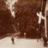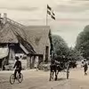 Traktørpavillonen Gyldenlund, opført under navnet Alexandrapavillonen. På vejen foran ses en gig samt gående og en cyklist