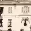 Hvidøre set fra haven; to damer og en sortklædt kvinde ses foran villaen.