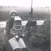 Eivind, Mogens og Karen med Peter Olsens ejendom, Ægypten 3, i baggrunden.