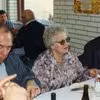 John Johansen, Esther Jensen og H.P. Jensen ved Holger Fugls 25-års jubilæum i Øster Egesborg Brugs 1994.