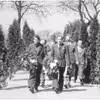 Læge Ove Malling med frue og landinspektør Ole Buch med Karen Buch og datteren Inge i klapvogn