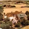 Luftfoto af Glamsbjerg Friluftsbad, hotellet, mm, ca 1935