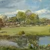 Maleri viser udsigt fra Åbanken mod Køng By og kirke