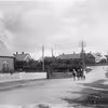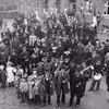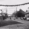 Gadeparti fra Assensvej i Glamsdalen. Bagerst i midten, Glamsbjerg skole, senere rådhus,