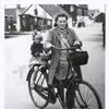 Karen Helene Jensen med datteren Sanny bag på, ca. år 1942-43, Gelsted sogn