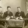 Søren Jensen, Kingstrup Lindegård, og kortvenner - måske i Akkerup, ca. 1912, Hårby sogn.