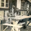 Asta Pedersen Tårup Overgård, Dyregårdsvej 2 og Lars Børge Hansen Hønnerup Hovgård, Hovgårdsvej 6 til fest, ca. år 1950 55, Gelsted sogn
