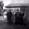 Karetmagerfamilien fra Ejby i haven v. Brenderup gæstgivergård, ca. år 1942, Brenderup sogn