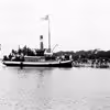 Damperen Ourø ved anløbsbroen ved Langtved Færgekro