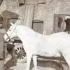 Ølkusk Niels Jørgensen med hest, ved Hvalsø Hotel..