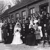 Bryllupsbillede med hvid brud og bryllupsgæster