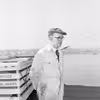 Mand på dækket af nybygning, Nakskov Skibsværft.