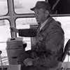 Kranfører Funchs i magnetkranens førerhus, Nakskov Skibsværft.