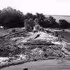 Slotø i Nakskov fjord, parti af ruinerne af Kong Hans' skibsværft, til højre gården som brændte ved