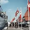 Kongen og dronningen forlader Dannebrog i forbindelse med kongebesøg i 1966