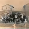 Folkehold foran Hovedbygningen til Gammeleje, Lyvej 30, St. Løjtofte