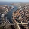 Luftfoto over Nakskov by og Nakskov Skibsværft.