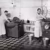 Kølerummet på Nakskov Mejeri. Der er vist mælkeflasker, mælkejunger og smørdritler.