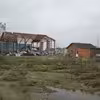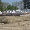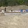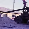 Maskine fra A.Mikkelsen & Søn, ved at lægge jerndrager på plads på byggeri