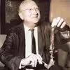 Journalist Jens August Valdemar Jensen Skaaning med sin morgenmad en kogt sild.