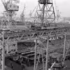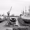 Skibe i dok set fra porten på Nakskov Skibsværft.