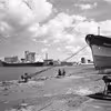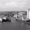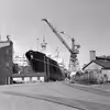 Søsætning fra Nakskov Skibsværft. Nakskov havn med skibe.