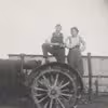 Otto Clausen og Johannes Larsen høster med traktor og selvbinder