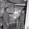 Værftarbejdere ombord på nybygning, Nakskov Skibsværft.