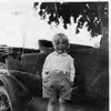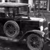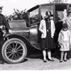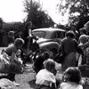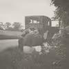 Familien Lange holder pause i grøftekanten ved deres bil, ca. 1935.