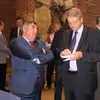 Edvard Nielsen tidligere præst ved kirken i Høje Taastrup blæser på byhorn i Høje-taastrup byrådssalen.