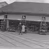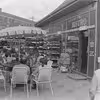 Axeltorvets Bistro, Køgevej 77. Planterne er udstilling fra Gartneriudsalget, også nr. 77. Bag parasollen skimtes Forstædernes Bank, Køgevej 50.