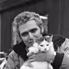 Katteejeren står med sin kat på armen.