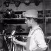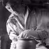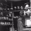 Keramiker Karen Wendelboe ved drejeskiven på lervarefabrikken Brack & Sønner.