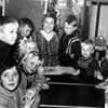 Børn ved bord.