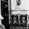 Hestevogn og cykler foran forretning.