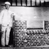 Murersvend stående ved sit svendestykke