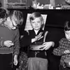 Børn, siddende ved bord, spiller