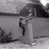 To børn legende ved skulptur