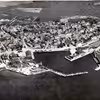Luftfoto af havn og by